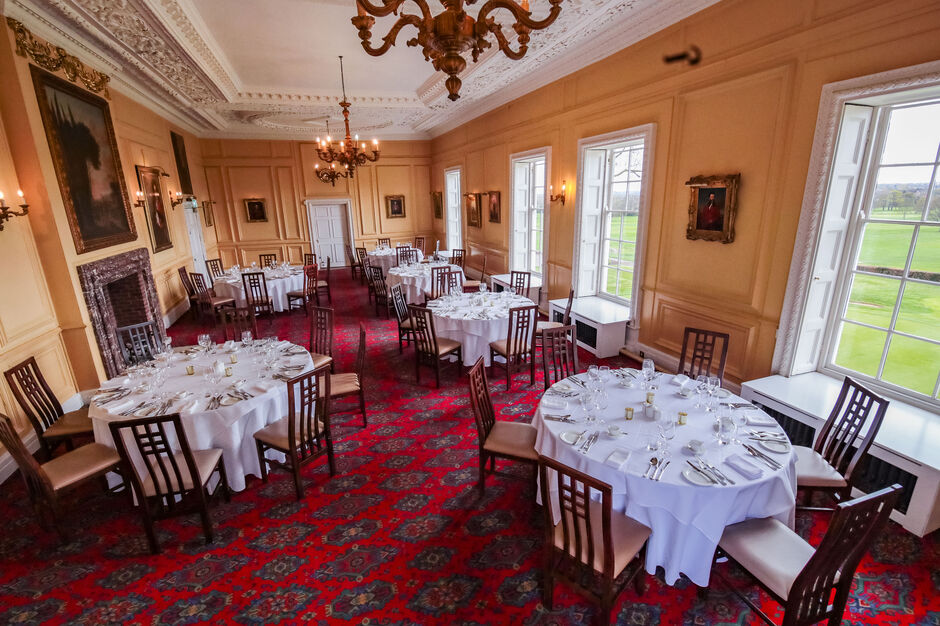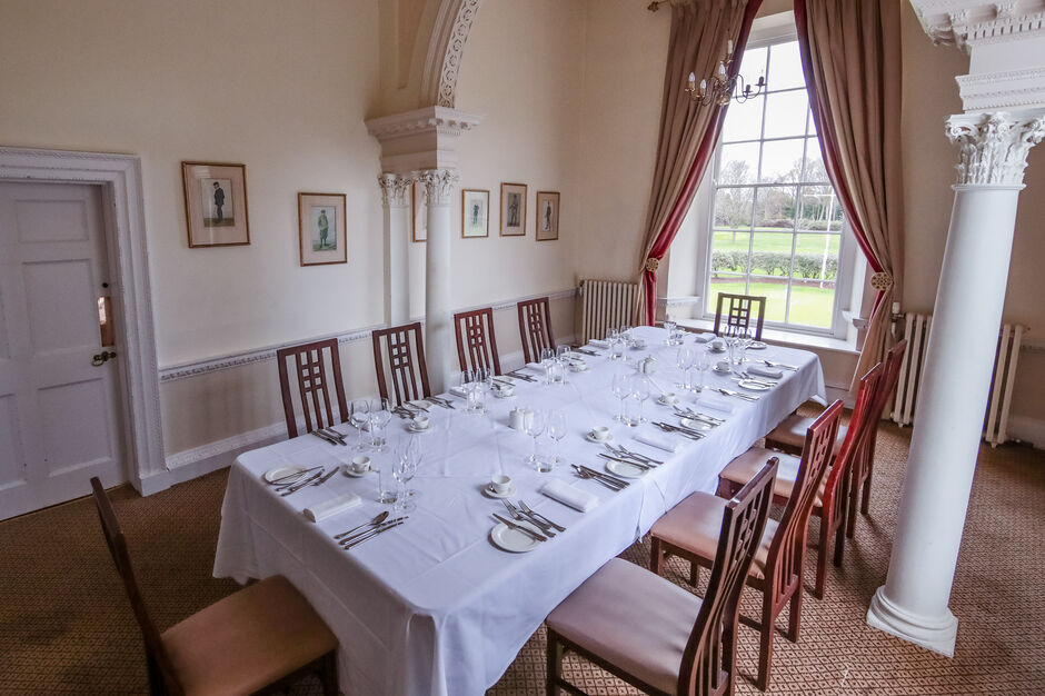 Located on the first floor and overlooking the 18th green, the Eagleton Gray Dining Room enjoys sweeping views across the course and provides an elegant setting for formal lunches, dinners and special occasions. As the principal entertaining space within the house, it combines period character with generous proportions and can accommodate up to 90 guests for a seated event.